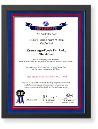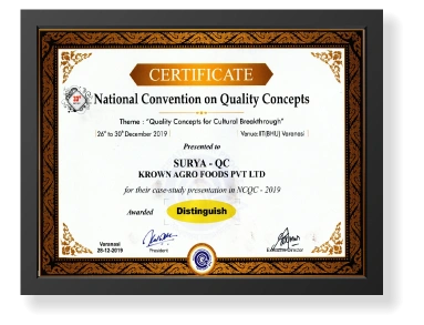 Recognized for excellence in quality and manufacturing standards, KROWN Biscuits proudly won the prestigious Gold Award at the 7th HCCQC in Haridwar, 2017, highlighting our commitment to perfection and innovation.