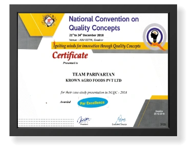 KROWN Biscuits was honored with the prestigious Excellence Award at the 31st NCQC in Mysore, 2017, recognizing our superior quality standards, operational excellence, and dedication to delivering world-class biscuits.
